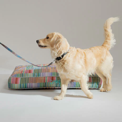 Influenced by the movement of paws and feet in the hustle and bustle of city life, the vibrant Pawsteps Electric print reflects walks in urban jungles where humans and animals stride together. Browse the full limited edition collection of Omlet designer dog beds now, including matching leashes, collars and poop bag dispensers.