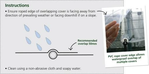 Ensure gutter edge of overlapping cover is facing away from direction of prevailing weather or facing downhill if on a slope. (Recommended overlap = 2in)