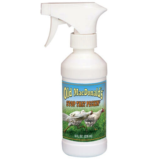 Old MacDonald’s Stop That Peckin’ can be used to help break a flock’s pecking habit and is ideal for use on birds newly introduced to the group as a preventative measure. Its non-toxic, weather resistant formula is designed to be applied directly onto poultry and fowl to stop them from pecking one another. It should be applied when pecking is first noticed, before the skin becomes red and raw.