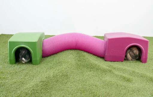 By connecting up several tunnels and shelters you can create an amazing play space where small “rooms” are connected by tunnels – just like a warren in the wild. By adding more tunnels and bending them you can create new set ups for your pets, making sure they never get bored.